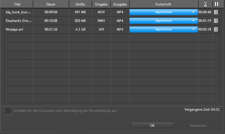Für Videokonvertierungen bietet sich die Nutzung der Videoengines der Grafikprozessoren an. Nvidia CUDA und Intel Quick Sync Video sind neben der reinen CPU-Berechnung verfügbar. Hier haben wir mit Cyberlinks Media Espresso drei verschiedene Videodateien auf eine Auflösung von 1.280 x 720 Bildpunkte im H.264-Format eingedampft. Vor allem bei wmv- und mov-Videos arbeitet die Intel-Lösung ungefähr doppelt so schnell, wie Nvidias CUDA. Bei avi-Dateien hingegen liegen beide in etwa gleichauf.