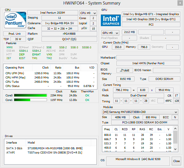 Das Einstiegsmodell ist mit dem etwas angestaubten Intel Pentium B980 ausgestattet. Dieser Prozessor basiert auf der Sandy-Bridge-Architektur, auch wenn viele Features, wie zum Beispiel Turbo Boost, deaktiviert sind. Der Nachfolger, basierend auf der aktuellen Ivy-Bridge-Architektur, namens Intel Pentium 2020M, ist ebenfalls zu haben, und auch in unserem Testgerät verbaut.