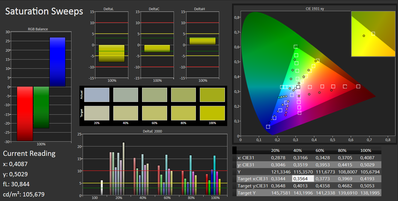 ΔE ColorChecker Calman: 12.1 | ∀{0.5-29.43 Ø4.78}