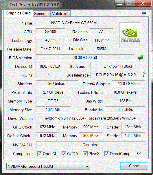 Wo wir beim nächsten Thema angelangt wären, nämlich der Grafikkarte. Eine wichtige Information gleich vorweg: Anders als beispielsweise die GeForce GT 650M basiert die eingesetzte GeForce GT 630M nicht auf der brandneuen Kepler-Architektur (28 nm), sondern noch auf der - inzwischen minimal angestaubten - Fermi-Technologie (40 nm).