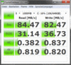 Die Festplatte hat mit 750 GByte zwar eine üppige Größe, von der Leistung darf man jedoch nicht allzu viel erwarten. Samsungs 2.5-Zoll-HDD Spinpoint M8 (HN-M750MBB) nimmt bei den Benchmarks keinen der vorderen Plätze ein. Nicht zuletzt aufgrund der mageren Drehzahl (5400 U/Min) ist die Übertragungsrate relativ gering. Während HDTune im Schnitt 61 MB/Sek ausgab (Zugriffszeit: 18 ms), waren es beim CrystalDiskMark immerhin knapp 83 MB/Sek.