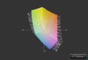 Während die meisten Geräte einen Schwarzwert von rund 1.0 cd/m² aufweisen, siedelt sich das Akoya P6633 bei ungefähr 0.6 cd/m² an. Was bedeutet das in der Praxis? Dunkle Spiel- und Filmpassagen verkommen nicht zu einem gräulichen Brei. Der Kontrast fällt mit knapp 430:1 ebenfalls überdurchschnittlich aus. Viele Geräte schaffen hier maximal 200:1. Auch die Helligkeit überzeugt mit guten 266 cd/m². Einzig der Farbraum (siehe Bilder) könnte etwas größer sein.