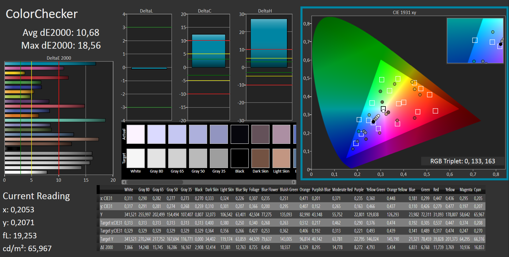 ΔE ColorChecker Calman: 10.68 | ∀{0.5-29.43 Ø4.78}