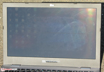 Das Akoya ist mit einem spiegelnden 13,3-Zoll-Display ausgestattet, das eine native Auflösung von 3.200 x 1.800 Bildpunkten besitzt. Der Bildschirm wartet mit ordentlicher Helligkeit (282,9 cd/m²) auf. Der Kontrast (454:1) fällt zu niedrig aus. Positiv: Der Bildschirm zeigt zu keiner Zeit PWM-Flimmern. Das Akoya ist alternativ auch mit einem Full-HD-Display zu haben.