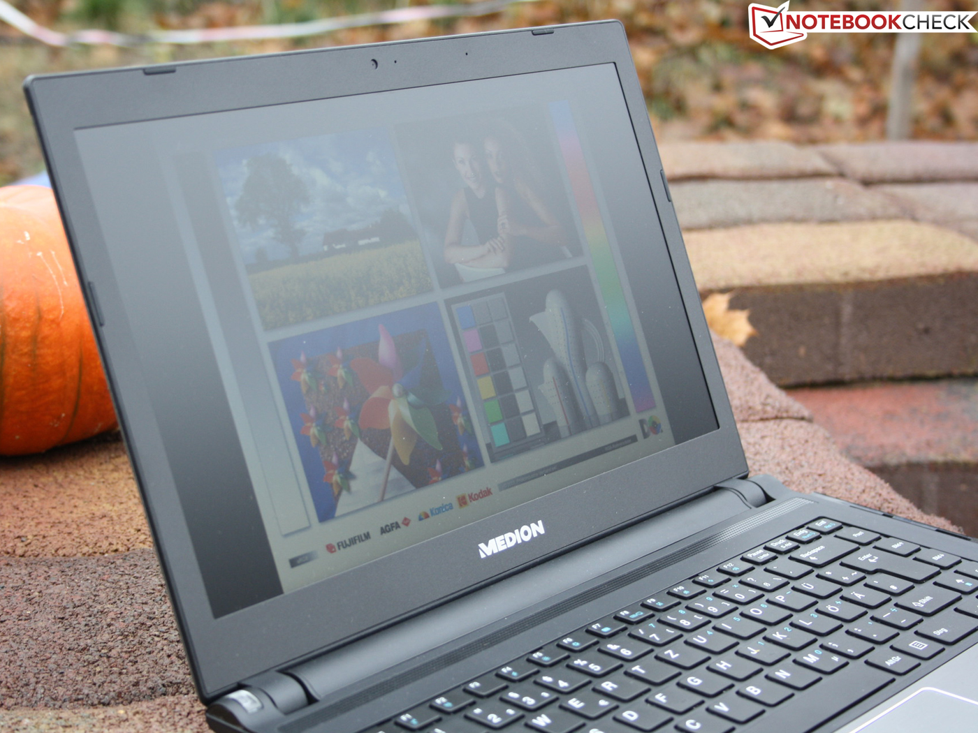 Die beste Mobilität im Sonnenschein verfehlt das Akoya nur auf Grund seines unterdurchschnittlich hellen Panels. Die Akkulaufzeit von 5:30 Stunden im WLAN-Test spielt jedoch in der richtigen Liga (mit Zusatz-Akku). Die Option auf ein DVD-Laufwerk ist sicherlich für manche Interessenten ganz großes Kino. Jedoch liegt es auch an diesem MultiBay-Schacht, dass die Stabilität des Chassis zu wünschen übrig lässt.