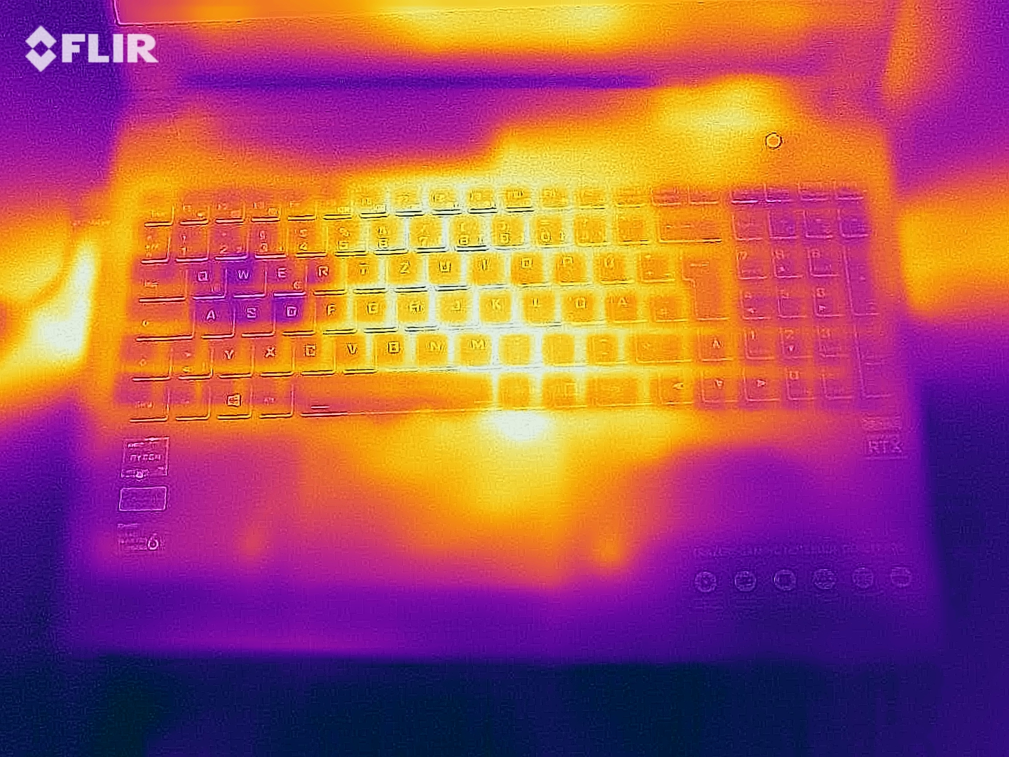 (+) Die maximale Temperatur auf der Oberseite ist 37 °C. Im Vergleich liegt der Klassendurchschnitt bei 40.4 °C (von 21.2 bis 68.8 °C für die Klasse Gaming).