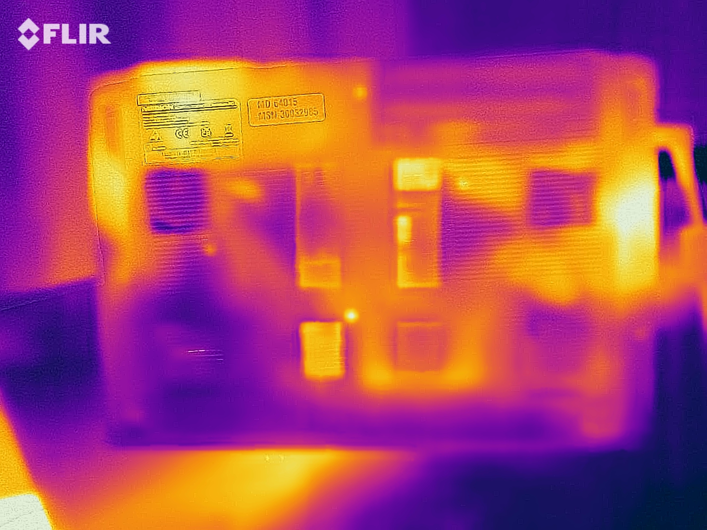 (+) Ohne Last messen wir eine durchschnittliche Temperatur von 26.6 °C auf der Oberseite. Der Klassendurchschnitt erreicht 33.9 °C.