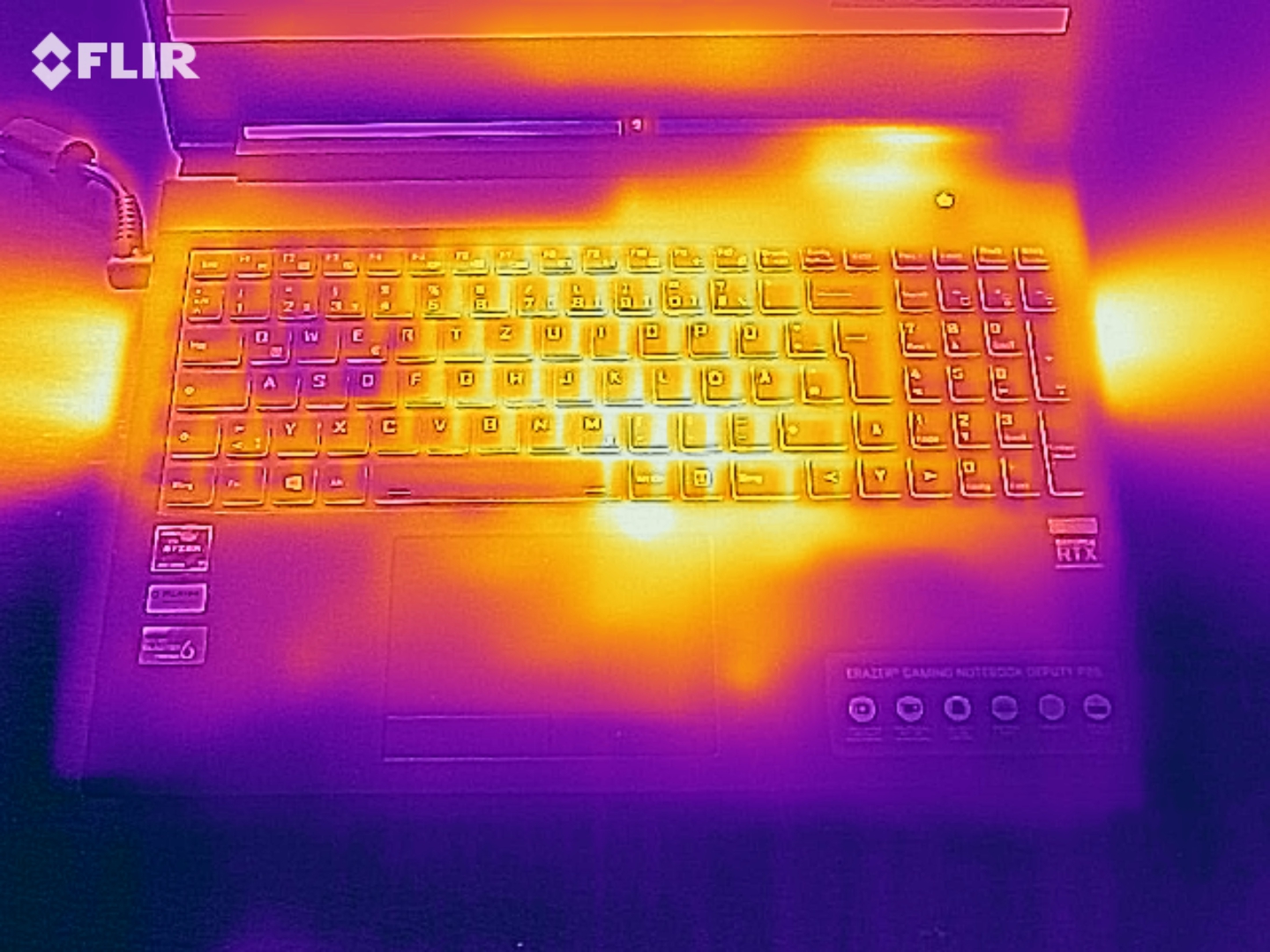 (-) Die Handballen und der Touchpad-Bereich können sehr heiß werden mit maximal 41 °C.