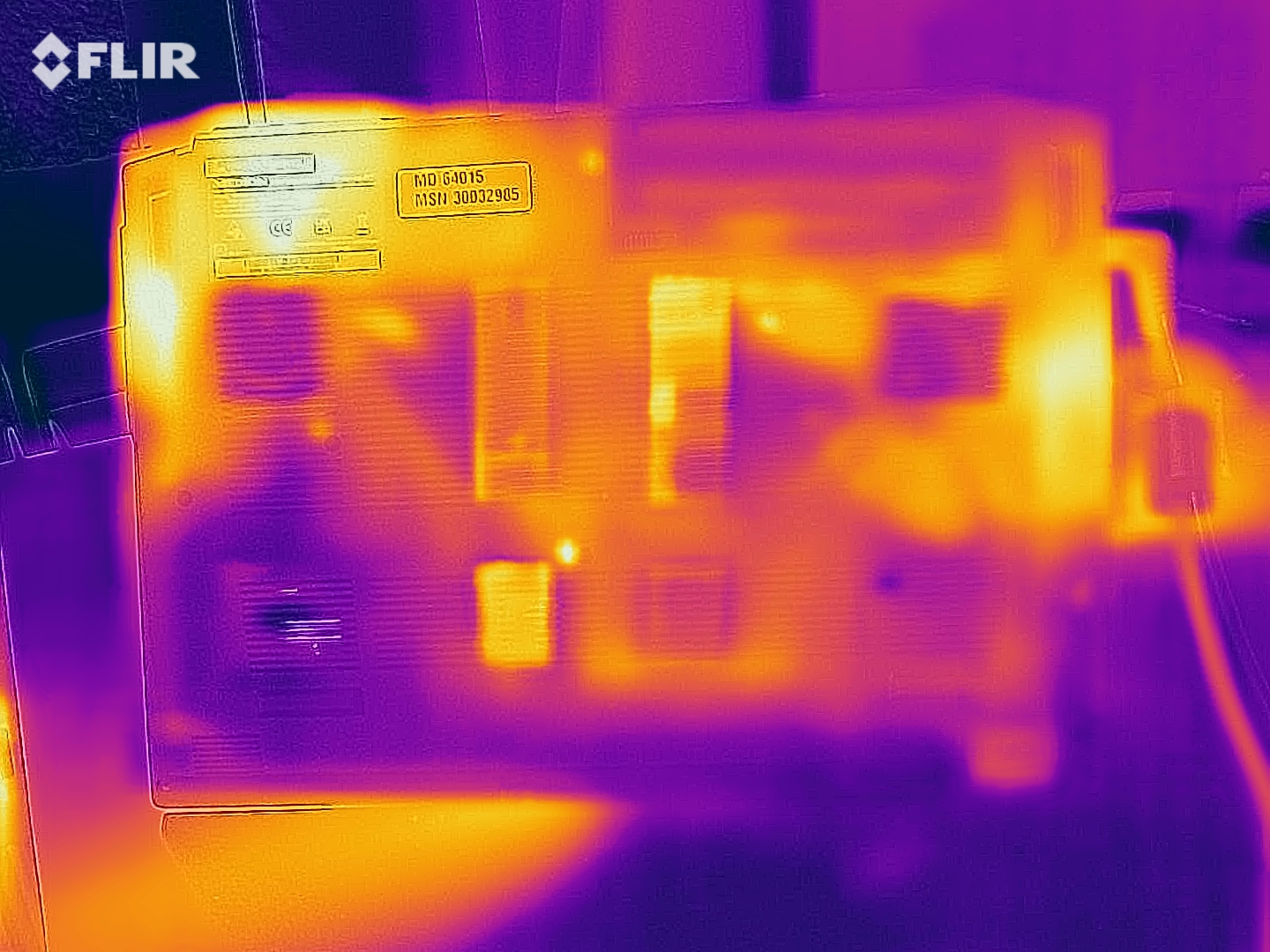 Vorteil der hohen Geräuschkulisse sind die moderaten Gehäusetemperaturen. Im 3D-Betrieb konnten wir der Oberseite höchstens 43 °C und der Unterseite höchstens 45 °C entlocken – da werden einige Konkurrenten deutlich wärmer.