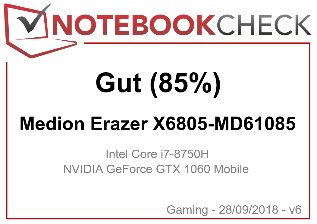 Test Medion Erazer X6805 (i7-8750H, GTX 1060, FHD) Laptop