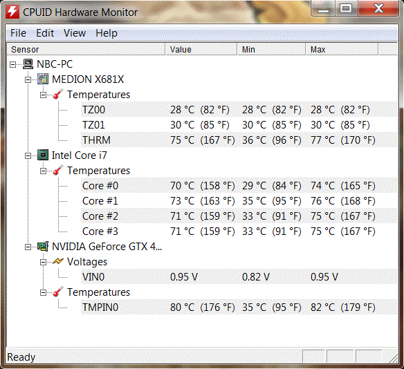 Um die Komponenten muss man sich ebenfalls keine Sorgen machen. Core i7-2630QM und GeForce GTX 460M siedelten sich unter Volllast bei rund 70 respektive 80°C an. Die verhältnismäßig geringe Temperatur des Prozessors ist dabei leider auf ein Throttling zurückzuführen. Innerhalb unseres Stabilitätstests mit den Tools Furmark und Prime taktete sich Intels Quad-Core temporär auf dürftige 800 MHz herunter.