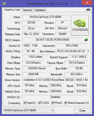 Im Prozessor ist zusätzlich die Intel HD Graphics 4600 verbaut, die für grundlegende Tätigkeiten mehr als genug Power bietet. So kann die GeForce GTX 860M durch Nvidia Optimus deaktiviert werden, falls nur wenig Leistung benötigt wird und eher ein geringer Energieverbrauch gewünscht ist.
