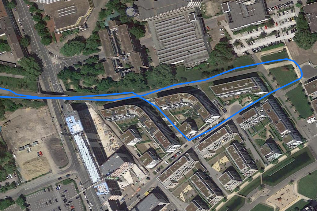 Das GPS im Android-Tablet hat vor allem mit engen Kurven Probleme und zeichnet diese häufig nur als schräge Linie auf. Dadurch werden Wege abgekürzt und der Streckenverlauf führt auch schon mal durch eine Hauswand. Für grobe Positionsbestimmungen ist der Tablet-PC geeignet, für andere Aktivitäten, wie z.B. Geocaching, ist er aber zu ungenau.