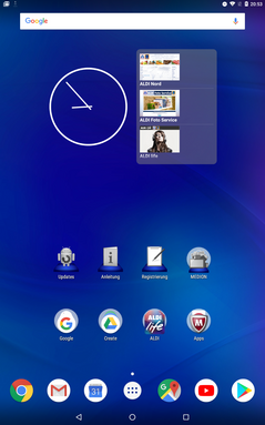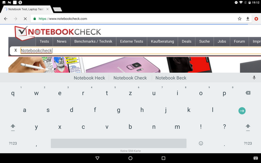 Das Onscreen-Keyboard des Lifetab P10606 kann im Hochformat gut bedient werden, auch wenn das Tablet dabei in der Hand gehalten wird. Im Querformat werden die Buchstaben mit einem Finger zuverlässig gefunden. Liegt das Tablet auf einem Tisch, lassen sich mit etwas Übung sicherlich auch mehrere Finger zum Tippen benutzen. Dabei fällt das Feedback durch Vibration etwas dürftig aus. Der Touchscreen reagiert aber zuverlässig und schnell genug, damit keine Buchstaben übersprungen werden. Medion hat im eigenen Store auch einen Eingabestift im Angebot, dieser verfügt nicht über Druckpunkte und ist lediglich ein Ersatz für die eigenen Finger.