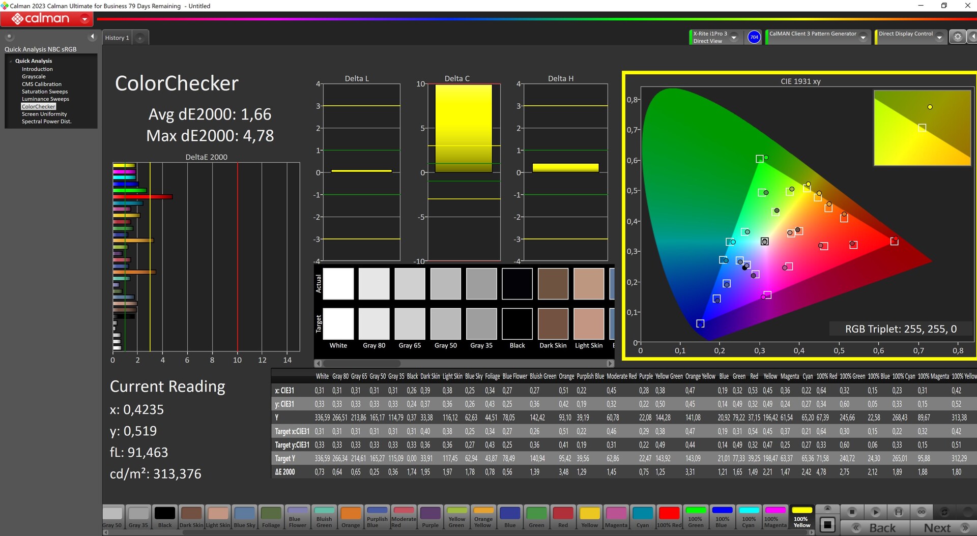 | Colorchecker dE 2000 calibrated * | 1.66 | 0.8 52% | 1.1 34% | 1.2 28% | 1.27 23% | ||