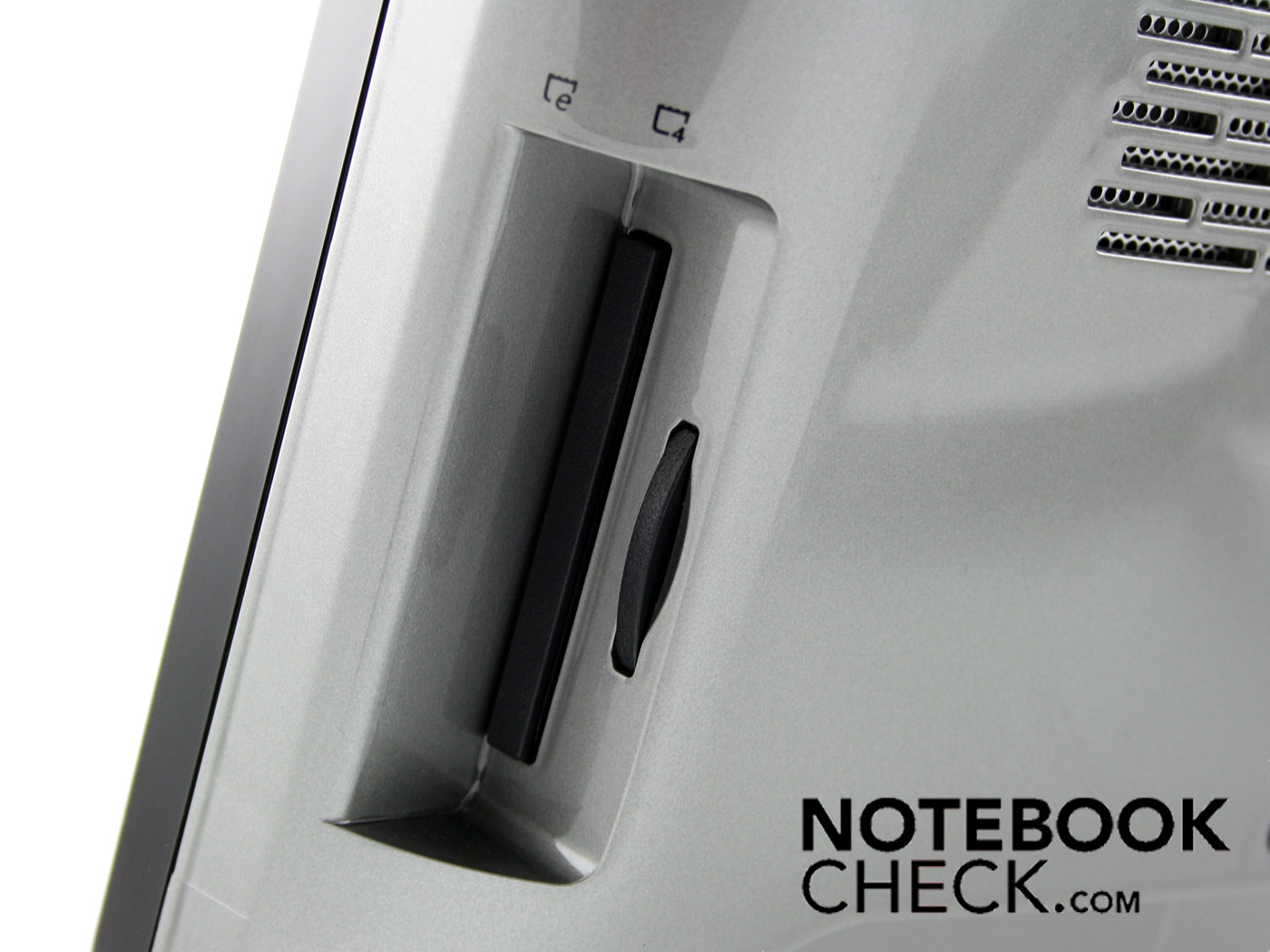Unter der Anzeige befindet sich ein berührungsempfindliches Sideshow-Display. Dieses kann aktiviert oder deaktiviert werden. Das Mini-Display wird über die Windows Sideshow Anwendung angesprochen und zeigt Minianwendungen wie RSS-Feeds, den Systemstatus oder den Mediaplayer.