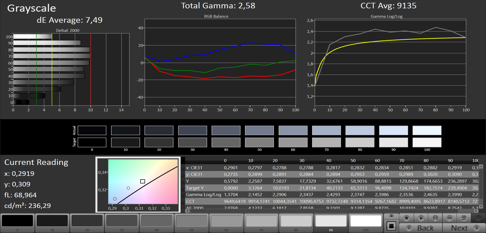 ΔE Greyscale Calman: 7.49 | ∀{0.09-98 Ø5}