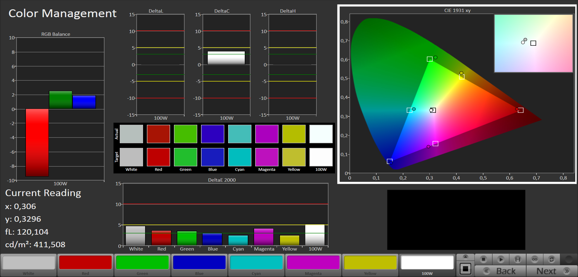 | Delta E Graustufen * | 3.71 | 5.62 -51% | 5.44 -47% | 8.69 -134% | 7.92 -113% |