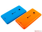 Bunt und flexibel präsentiert sich das Microsoft Lumia 535. Es ist den Farben Grün, Cyan, Orange, Weiß und Schwarz erhältlich. Die Gehäuserückseite besteht vollständig aus Polycarbonat und lässt sich abnehmen und wechseln. Wem die Farbe also nicht mehr gefällt, der kann das Cover gegen ein anderes tauschen. Im Vergleichsfeld besitzt das Lumia 535 nicht nur das größte Display, sondern ist mit 8,8 Millimetern Bauhöhe auch das schlankeste Gerät und unterbietet das Moto E (12,3 mm) spürbar. Mit 146 Gramm ist es überraschend leicht und liegt aufgrund seiner abgerundeten Kanten gut in der Hand.