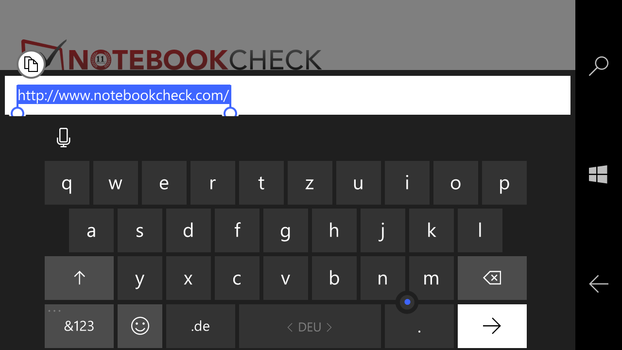 Microsofts virtuelle Tastatur genießt einen guten Ruf bei mobilen Nutzern, und tatsächlich lässt es sich trotz der ungewohnt schmalen und hohen Tasten sehr genau mit ihr tippen. Microsoft spendiert der Tastatur seit Neuestem sogar einen kleinen Steuerknubbel, wie man ihn beispielsweise von Lenovos ThinkPads kennt, mit dem man den Cursor steuern kann. Obwohl auch dieser Knubbel sehr klein aussieht, kann man überraschend genau damit arbeiten, er ist eine echte Erleichterung im Alltag.