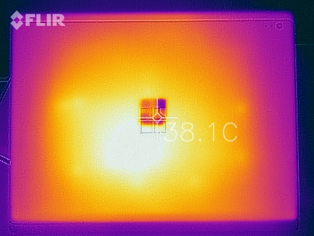 Passive Kühlung in Verbindung mit guter Leistungsentfaltung des Prozessors – wir haben im Vorfeld mit sehr hohen Oberflächentemperaturen gerechnet. Das ist aber nicht der Fall. Im Leerlauf erwärmt sich das Gehäuse praktisch überhaupt nicht, und unter Last kommt es darauf an, ob man den Prozessor oder die dedizierte Grafikkarte (oder beides benötigt). Im Alltag erwärmt sich die Rückseite des Tablets nur leicht und die Tastatureinheit überhaupt nicht. Beim Spielen messen wir an keiner Stelle mehr als 40 °C, und nur im Stresstest wird das Tablet ein wenig wärmer. 43 °C sind jedoch alles andere als bedenklich. Insgesamt also eine richtig gute Leistung angesichts der passiven Kühlung. Das erste Diagramm bildet das Tablet ab, das zweite die Tastatureinheit.