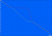 Unser Stresstest ist gerade für passiv gekühlte Geräte eine große Herausforderung, doch auch hier schlägt sich das Surface Book 2 sehr gut. Der Prozessor schwankt zunächst zwischen 2,4 und 2,9 GHz, was einem Verbrauch von 30 Watt entspricht. Nach kurzer Zeit setzt die Begrenzung bei 25 Watt ein und der Prozessor arbeitet mit 4x 2,4 GHz. Damit liegt er erneut deutlich über den spezifizierten 15 Watt. Danach setzt eine Schleife ein, die sich im Laufe des Stresstest stets in ähnlicher Form wiederholt. Sobald die Prozessortemperatur bei rund 85 °C liegt, fällt die TDP schlagartig auf 13 Watt (4x 1,6-1,7 GHz) und steigt dann wieder langsam an, bis erneut eine Temperatur von etwa 85 °C erreicht wird. Die Grenze ist hier nicht immer identisch, teilweise wird schon bei 80 °C wieder gedrosselt (siehe auch Diagramm unten). Die durchschnittlichen Werte in dem 90-minütigen Test liegen bei 15,63 Watt und ~1,8 GHz. Wenn man es ganz streng nimmt, handelt es sich dabei zwar um leichtes Throttling, da der Basistakt von 1,9 GHz unterschritten wird, doch wir haben im Vorfeld mit einer deutlich geringeren Leistung gerechnet.