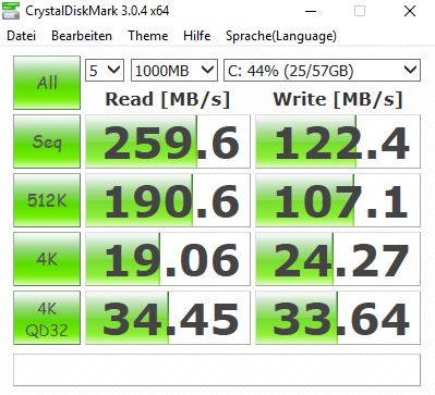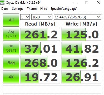 Der Speicherkartenleser bietet USB-3-Geschwindigkeit, was auch die Messergebnisse belegen. Mit unserer Referenzspeicherkarte (Toshiba Exceria Pro M501) lag die sequenzielle Datenrate beim Lesen bei 84,9 MB/s. Beim Kopieren von Bildern im JPG-Format ist er mit 67,8 MB/s etwas langsamer als andere USB-3-Kartenleser. Aber insgesamt reicht die Leistung aus, um vernünftig arbeiten zu können. Hier liegt das Surface Go knapp über dem Klassendurchschnitt.