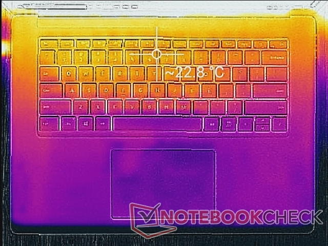 (+) Die Handballen und der Touchpad-Bereich sind mit gemessenen 29 °C kühler als die typische Hauttemperatur und fühlen sich dadurch kühl an.