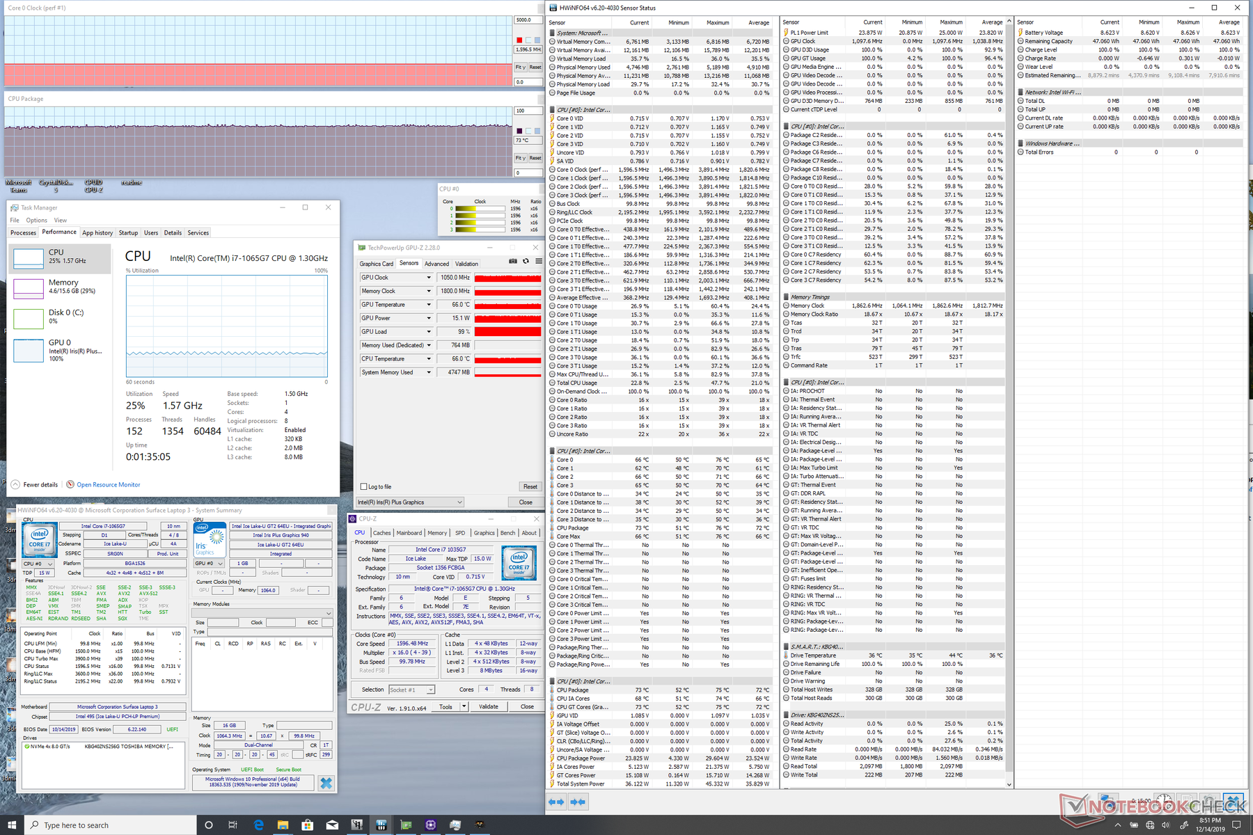 Da dies nun unser 9. Core i7-1065G7 in unserer Datenbank ist, haben wir mittlerweile ein gutes Bild vom Potenzial des Prozessors. Microsofts Implementierung der 25-W-CPU scheint besser zu sein als die der meisten Konkurrenten, da die Cinebench-Multi-Thread-Punktzahl um 11 Prozent höher ist als bei einem durchschnittlichen i7-1065G7. Damit ist die rohe Leistung um 16 Prozent höher als die des Ryzen 5 3580U und innerhalb von wenigen Prozenten des Core i5-9300H.