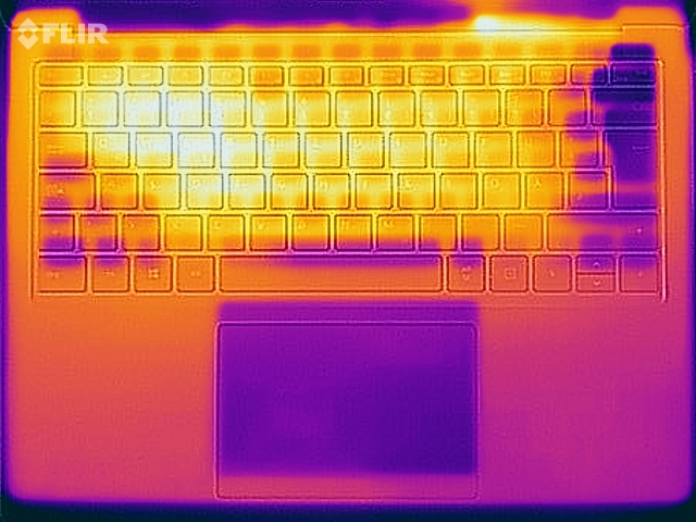 Die Metalloberflächen des Surface Laptop 4 erwärmen sich unter Last deutlich und die knapp 47 °C fühlen sich bei direktem Hautkontakt subjektiv auch unangenehmer an, als beispielsweise bei Kunststoffgehäusen. Bei hoher Belastung sollte man das Gerät nicht auf den Oberschenkeln abstellen, bei anspruchslosen Aufgaben (z. B. Browsen im Internet, Videowiedergabe) gibt es aber keine Einschränkungen.