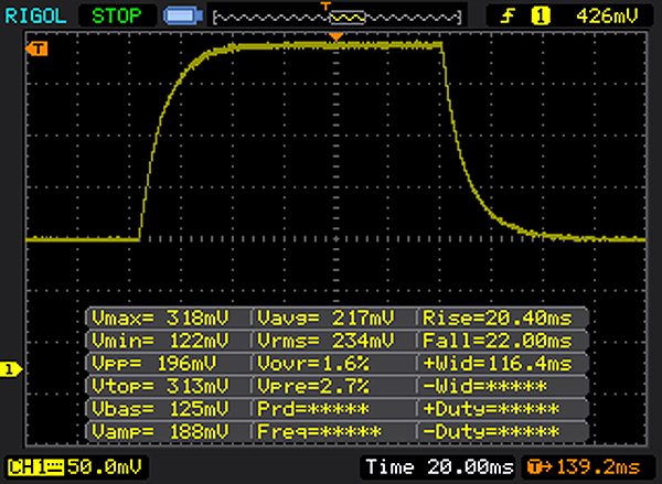 | 28 ms ... steigend ↗ und fallend ↘ kombiniert | ↗ 18 ms steigend | |