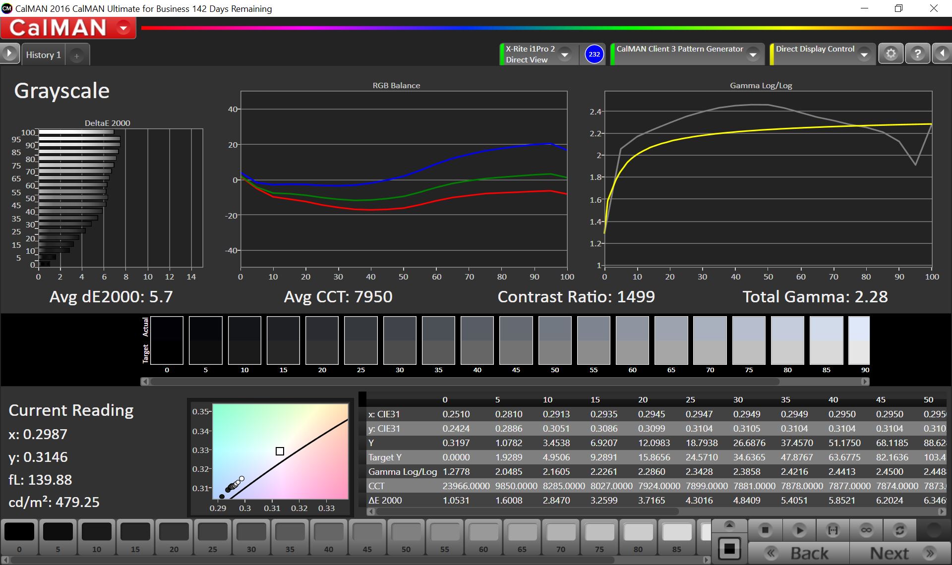 ΔE Greyscale Calman: 5.7 | ∀{0.09-98 Ø5}