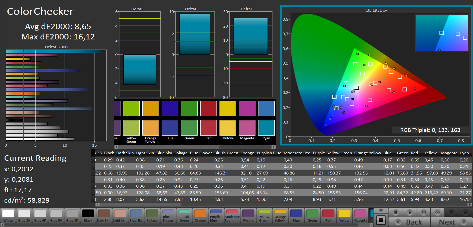 ΔE ColorChecker Calman: 8.65 | ∀{0.5-29.43 Ø4.78}