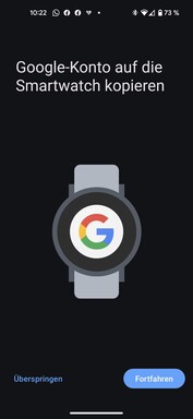 Ist die Health-App installiert, leitet sie in wenigen Schritten durch die Einrichtung. Ein Mobvoi-Konto muss dazu erstellt werden, außerdem kann ein Google-Konto auf die Smartwatch übertragen werden, dann ist der Benutzer in den Google-Apps gleich angemeldet. Nachdem wichtige Berechtigungen wie Zugriff auf Kontakte, Nachrichten und Anrufe erteilt wurden, ist die Smartwatch einsatzbereit.