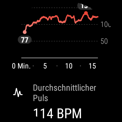 Die Analysedaten fallen nicht allzu tiefgreifend aus, immerhin gehört ein Pulsdiagramm dazu. Während der Aktivität zeigt die Moto 360 die Daten auch im Standby an.