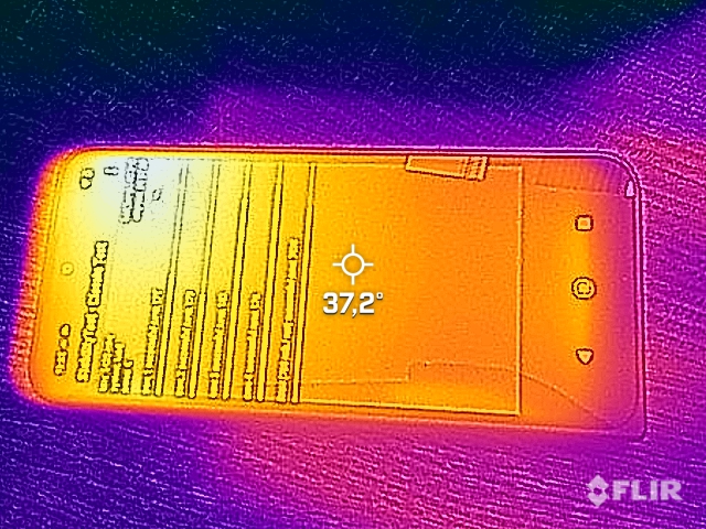 Die Erwärmung am Gehäuse des Motorola Defy fällt auch nach längerer Volllast recht moderat aus: 40 °C messen wir als Maximum an der Vorderseite. Damit ist das Smartphone immer problemlos anfassbar.