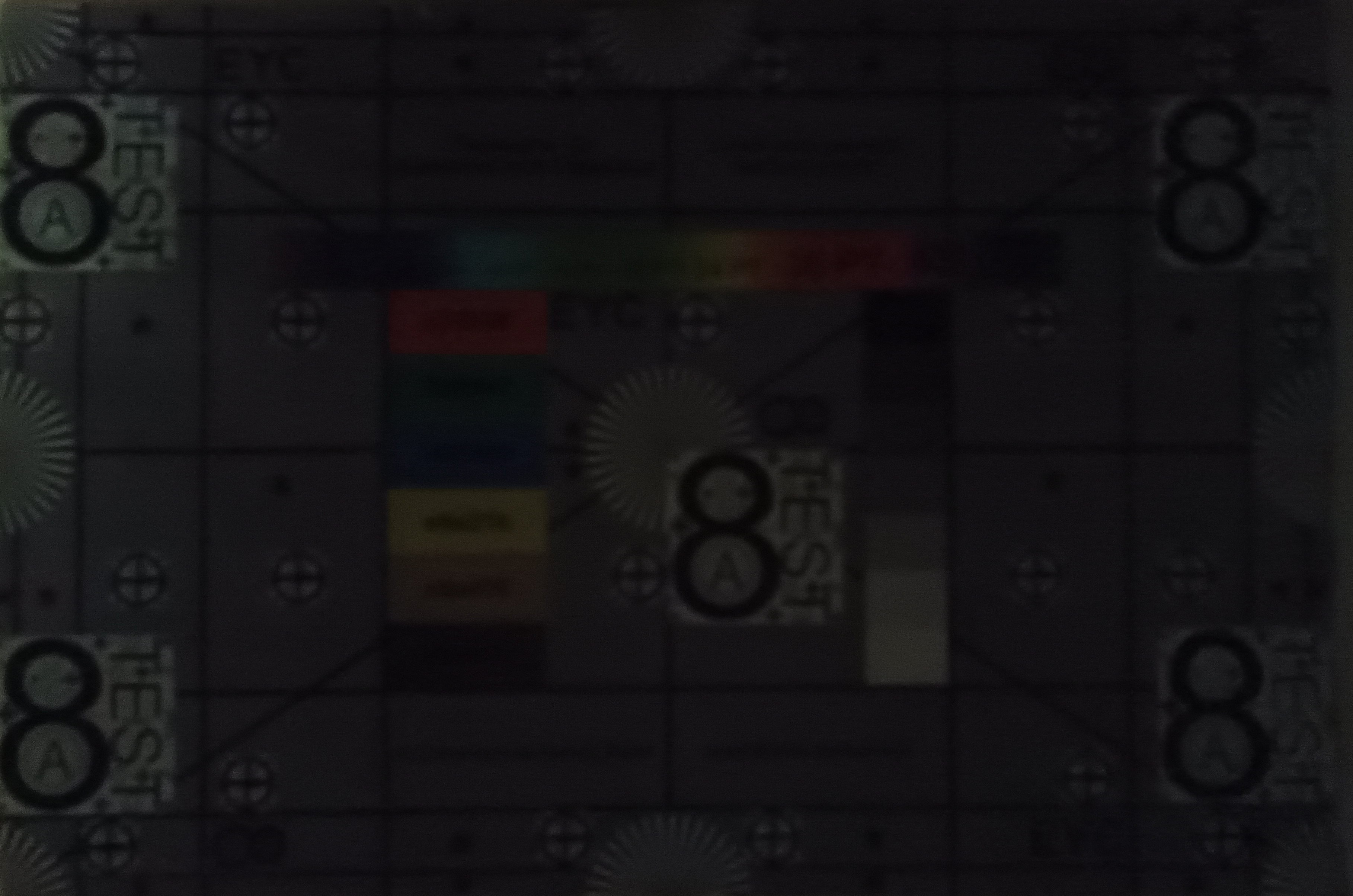 Auch das Testchart wirkt etwas überlichtet und kontrastarm, die Schärfe unter definiertem Kunstlicht ist aber ansprechend.