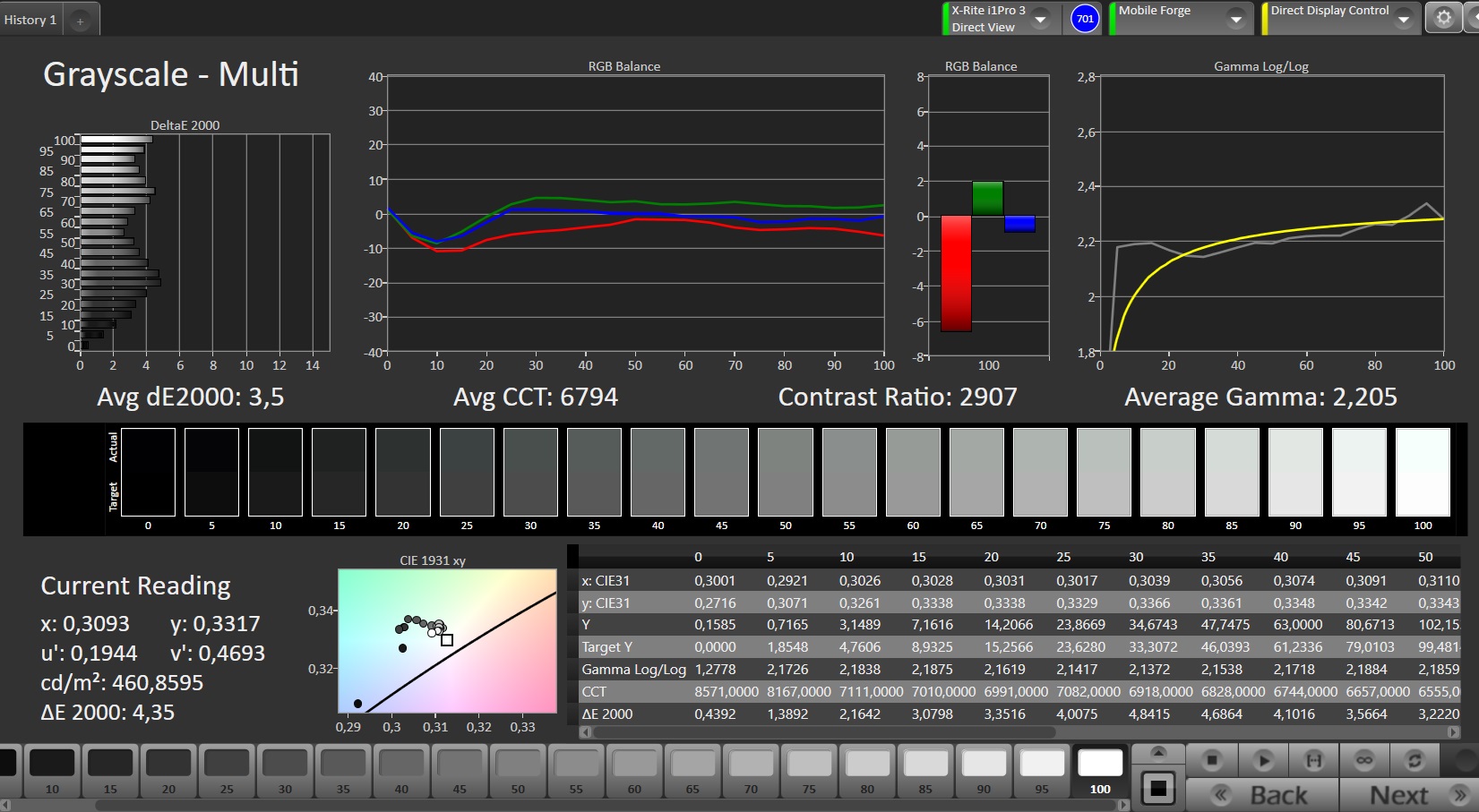 ΔE Greyscale Calman: 3.5 | ∀{0.09-98 Ø5}