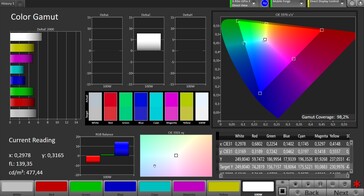| Brightness (cd/m²) | 480 | 438 -9% | 644 34% | 734 53% | 594 24% | 860 79% |