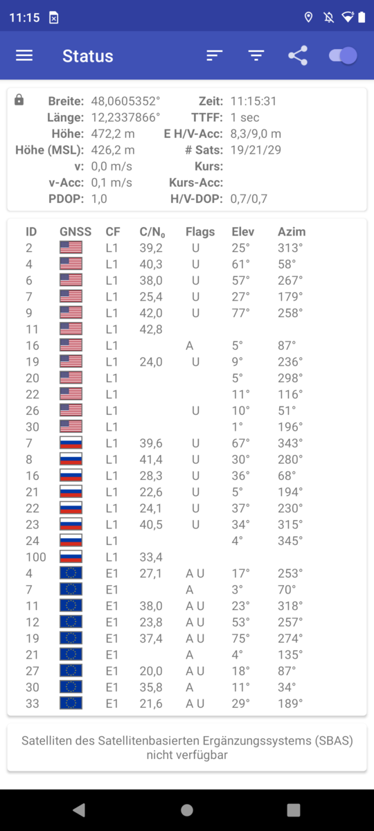Im Freien dauert es nur wenige Sekunden, bis das Ortungsmodul unsere Position auf wenige Meter genau bestimmt.