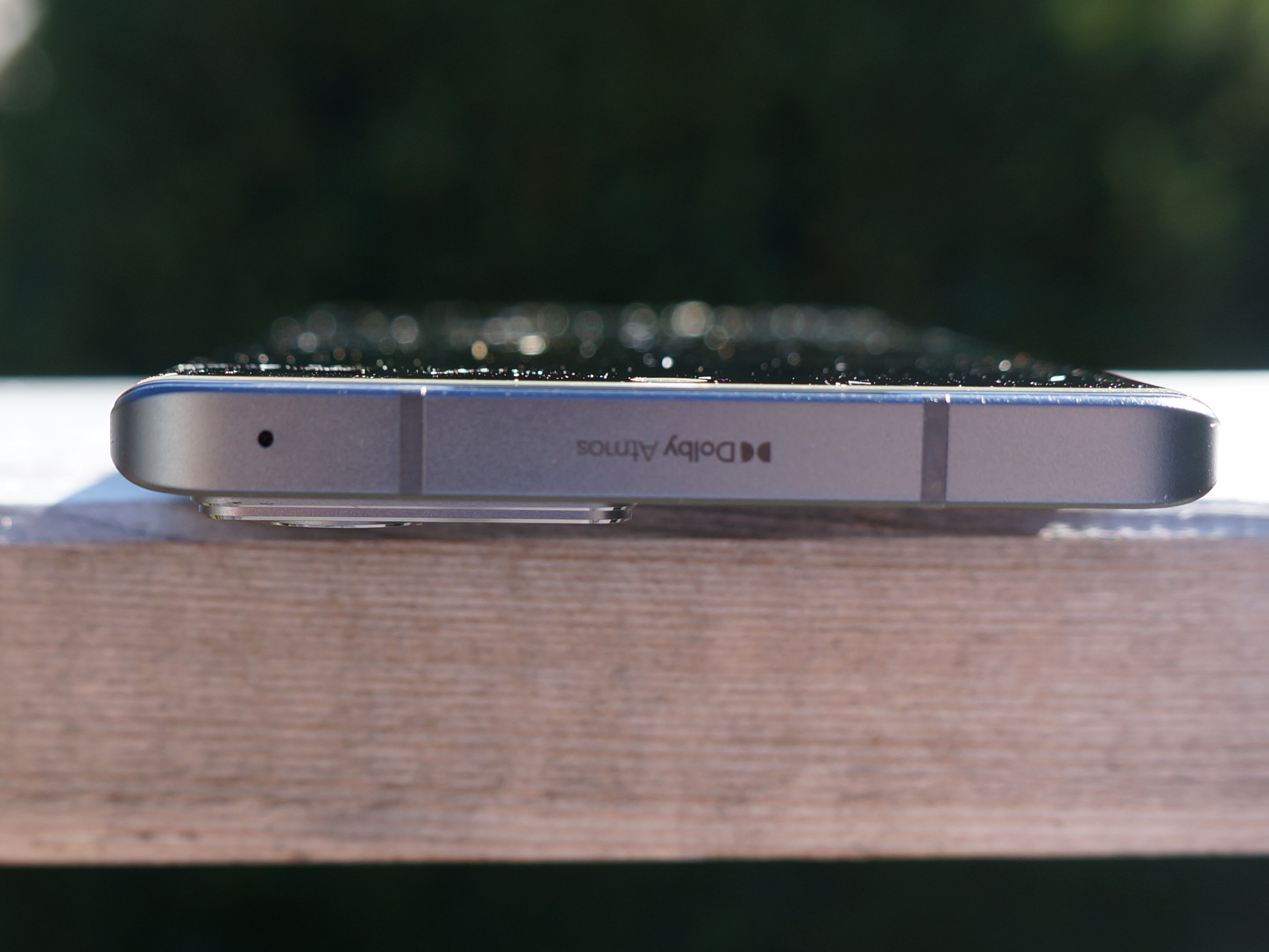 Alle Tasten des Geräts sind auf der rechten Seite positioniert. Der Powerknopf kann gut erreicht werden, auch die Leisertaste ist in Daumen-Reichweite. Um die Lauter-Taste zu erreichen muss allerdings umgegriffen werden. Der optische Fingerabdruckleser sitzt im Display.