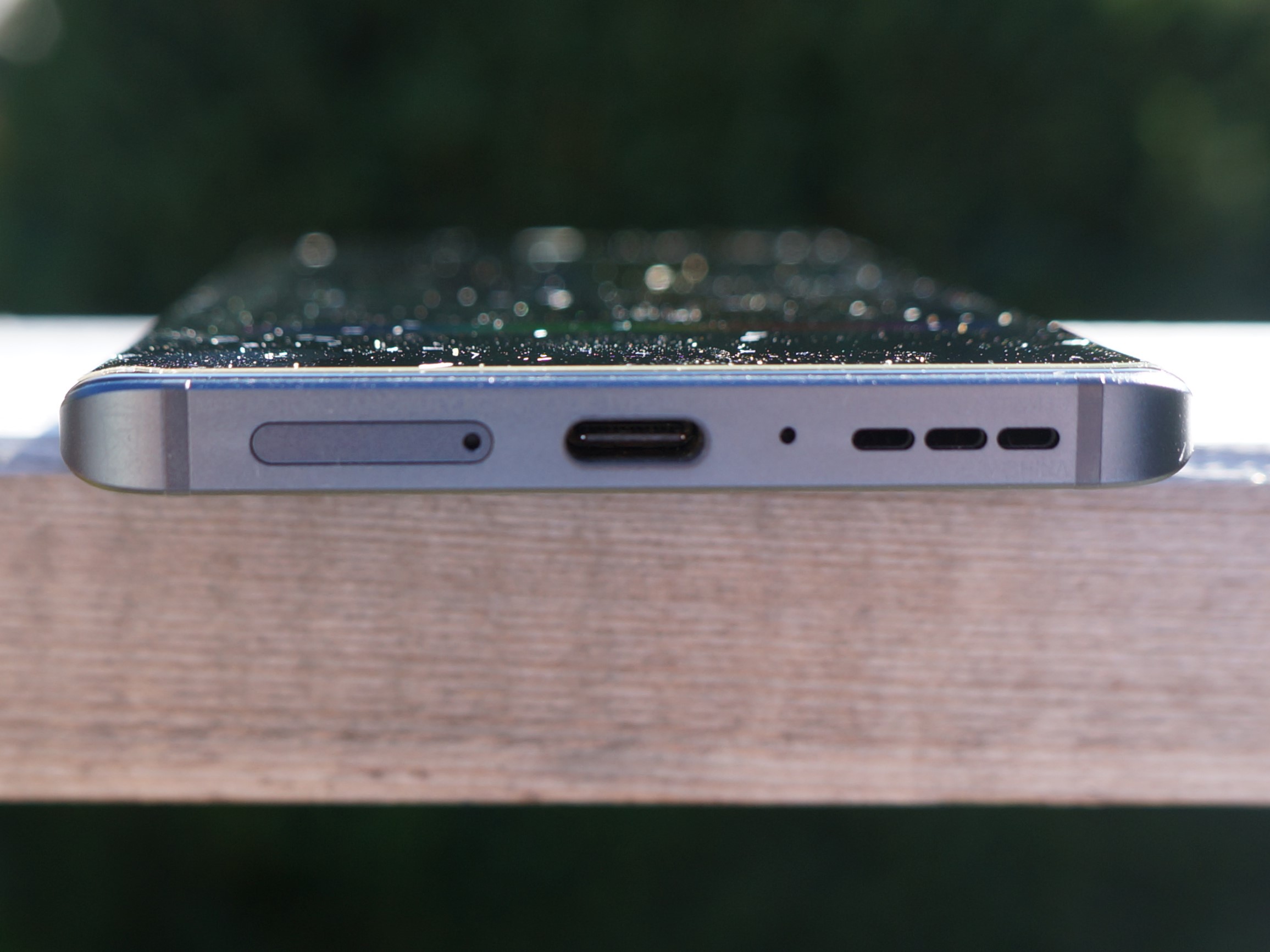 Das Kamera-Modul ragt deutlich aus der Rückseite heraus, daher wackelt das Gerät, wenn es auf einem Tisch liegt. Das Wackeln verschwindet auch mit der mitgelieferten Hülle nicht vollständig. Die Spaltmaße des Smartphones sind sehr klein und gleichmäßig. Bis auf das Wackeln der Lautstärkewippe am Testgerät gibt es an der Verarbeitungsqualität nichts auszusetzen. Das Gerät hat eine IP52-Zertifizierung.