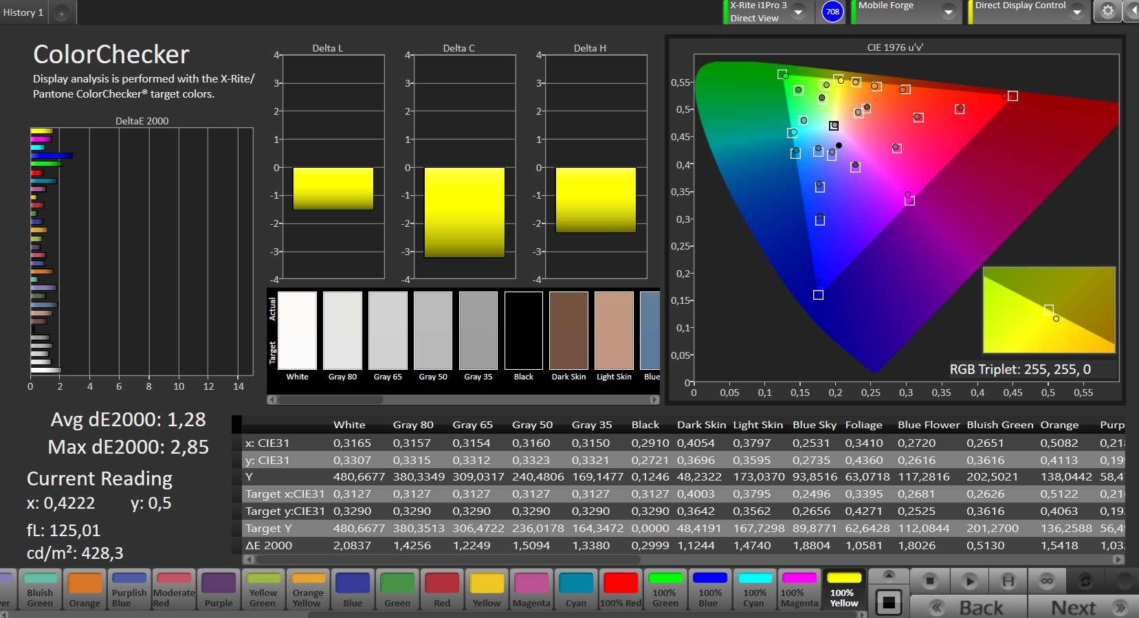 ΔE ColorChecker Calman: 1.28 | ∀{0.5-29.43 Ø4.77}