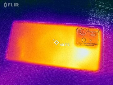 Einen wirklich kühlen Kopf bewahrt das Motorola Edge 40 Pro angesichts der hohen Power aber nicht: Bis zu 46,8 °C messen wir im Maximum und das bei Zimmertemperatur. Zudem fängt das Gerät auch an zu riechen.