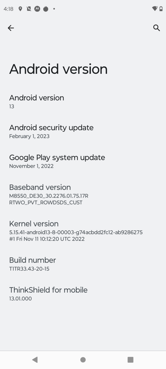 Die Sicherheitspatches stammen vom Februar 2023 und sind damit zum Testzeitpunkt bereits veraltet, was besonders bei einem High-End-Phones doch peinlich ist. Vor allem, da Motorola Sicherheitsupdates jeden zweiten Monat verspricht. Bis April 2027 soll das Smartphone mit Patches versorgt werden, also zum Testzeitpunkt noch gut vier Jahre lang.