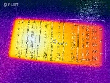 (-) Auf der Unterseite messen wir eine maximalen Wert von 46.1 °C (im Vergleich zum Durchschnitt von 34 °C).