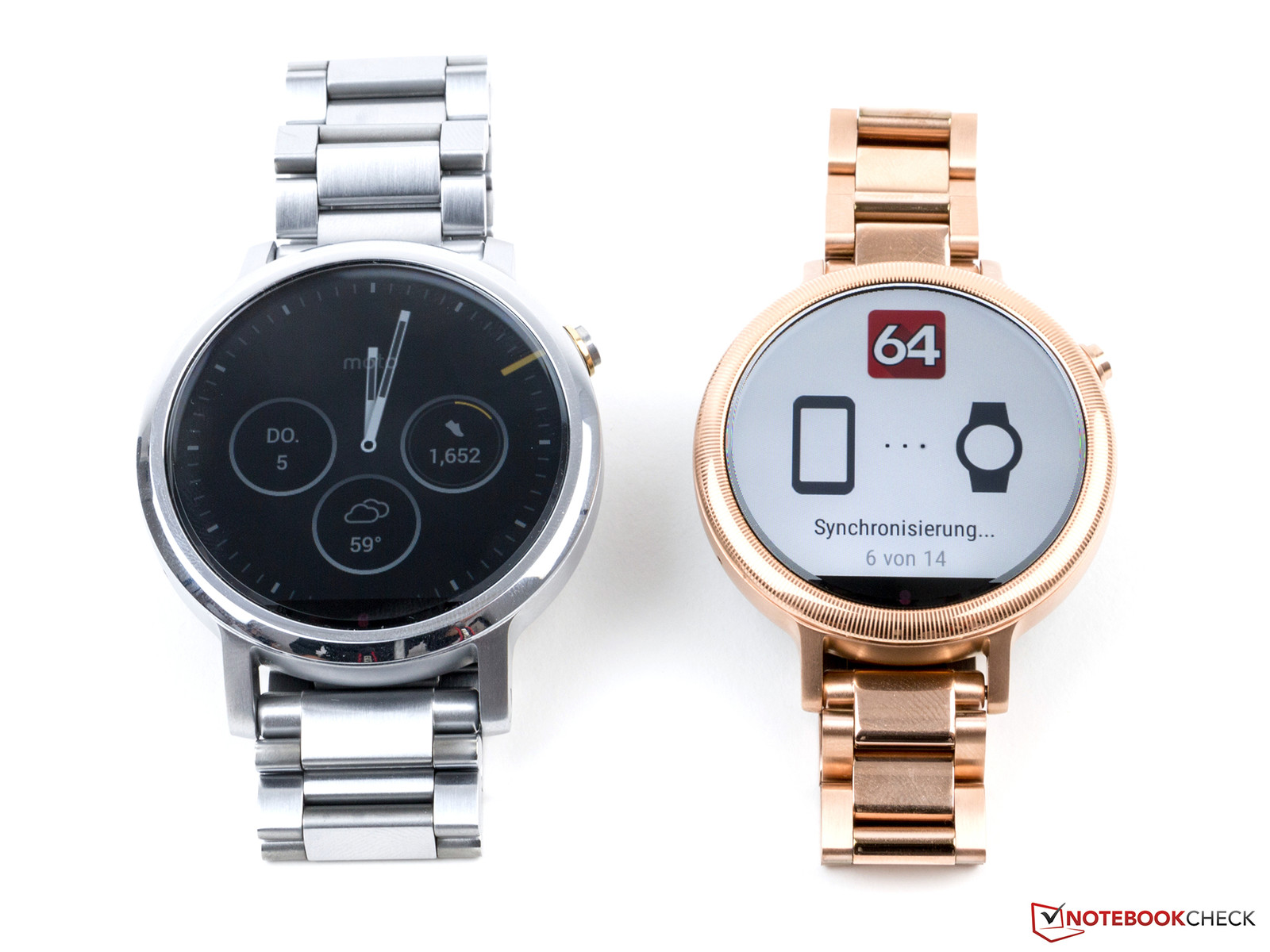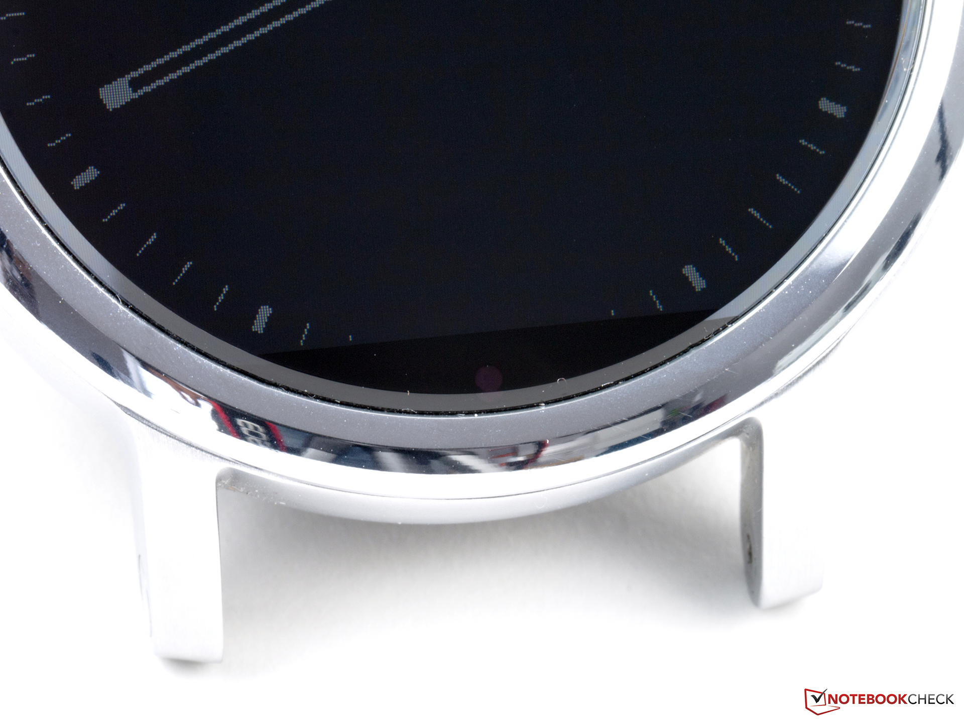 Anders als LG oder Huawei setzt Motorola in seiner Smartwatch wieder auf ein LC-Display, welches von Corning Gorilla Glas 3 geschützt wird. Das Panel ist in der großen Ausführung für Herren wieder 1,56 Zoll groß, wie schon beim Vorgänger. Die beiden 42-mm-Varianten müssen mit 1,37 Zoll auskommen. Mit 360 x 330 beziehungsweise 360 x 326 Bildpunkten liegt die Pixeldichte etwas unterhalb derer, welche die Konkurrenten offerieren können. In beiden Varianten bleibt damit die Pixeldichte deutlich unterhalb der 300 PPI und zeigt eine sichtbare Treppchenbildung.