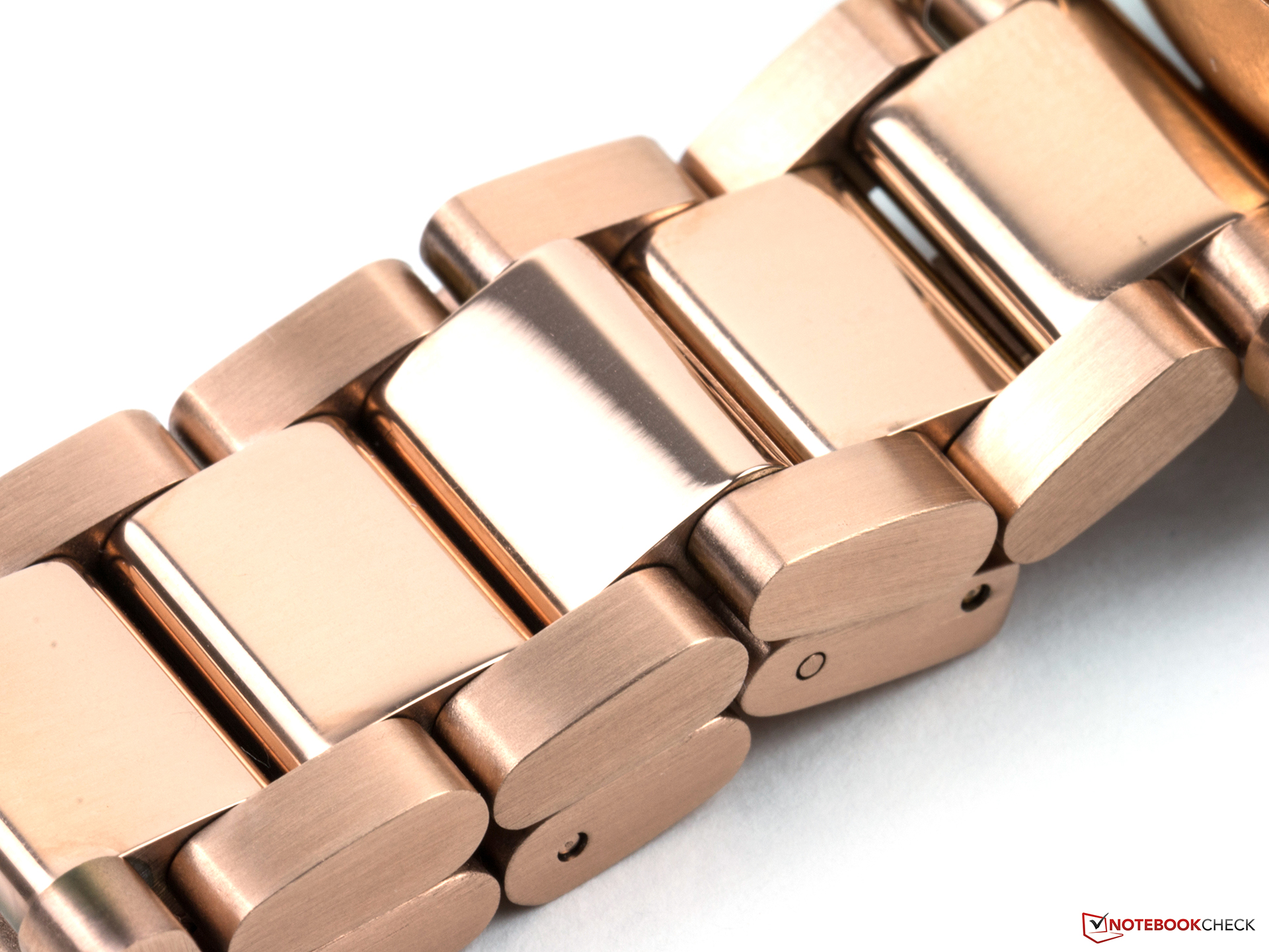 Das Gehäuse der Motorola Moto 360 (2015) ist in jeder Variante aus Edelstahl gefertigt. Die Unterseite besteht jedoch aus Kunststoff. Die Armbänder gibt es wahlweise aus Leder oder Edelstahl. Bei unseren Testmodellen handelt es sich um eine 46-mm-Herren- und eine 42-mm-Damenuhr. Beide besitzen ein Edelstahlarmband. Diese lassen sich, ähnlich wie bei der Huawei Watch, einfach mittels eines Schnellverschlusses wechseln. Die Kanten dieser Armbänder sind recht scharf. Wer sich eine Smartwatch mit Edelstahlarmband bestellt, sollte zudem einen Besuch beim Uhrmacher mit einplanen, denn um die passende Größe einzustellen, müssen eventuell einzelne Glieder des Armbandes entfernt oder hinzugefügt werden. Passende Zusatzglieder sind im Lieferumfang enthalten. Vor allem die Damenvariante ist im Auslieferungszustand recht eng und eignet sich damit auch für besonders schmale Handgelenke.