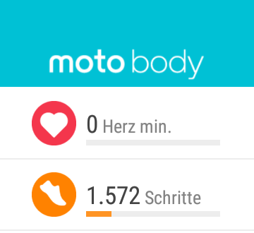 Dafür wird nur ein 3-Achsen-Beschleunigungssensor geboten. Huawei bietet in seiner Smartwatch doppelt so viele Achsen, was sich auf die Genauigkeit des Schrittzählers spürbar auswirkt. Die Moto 360 ist in der Praxis ein zu eifriger Schrittesammler und macht aus eifrigen Handbewegungen auch gerne mehrere Schritte. Der Pulssensor misst immer wieder zwischendurch den Herzschlag und protokolliert diese und nutzt sie zusätzlich, um die Aktivität des Trägers zu bestimmen. Die Auswertung in der App Moto Body dürfte ruhig etwas ausführlicher ausfallen.