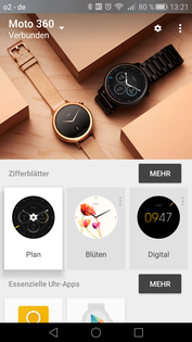 In puncto mitgelieferter Watch Faces zeigt sich Motorola etwas sparsam. Gerade einmal 18 Ziffernblätter stehen direkt zur Wahl. Es können aber weitere aus dem Google Play Store heruntergeladen werden.